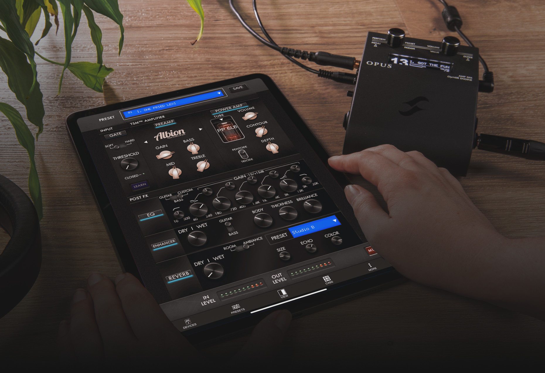 (TSM™)、MIDI統合、および将来性を見据えたUSB-C規格を追加。轟くようなハイゲイン、ペダルボードの土台となる崇高なクリーン、ギターの響きを際立たせるブリティッシュサウンドなど、デジタルアンプシュミレーターに求められるものがすべてを搭載。OPUSは際根のない卓越したトーンを生み出すための技術をあなたのギグバッグの中に提供します。